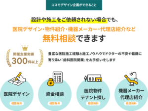医院デザイン・設計施工・物件探し・機器メーカー・代理店紹介まで歯科医院開業をサポート